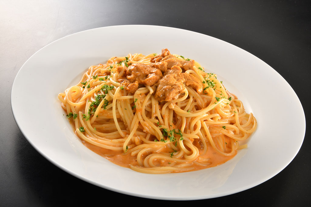 さらに美味しくなったソースにプリプリな海老とトマトをトッピング
