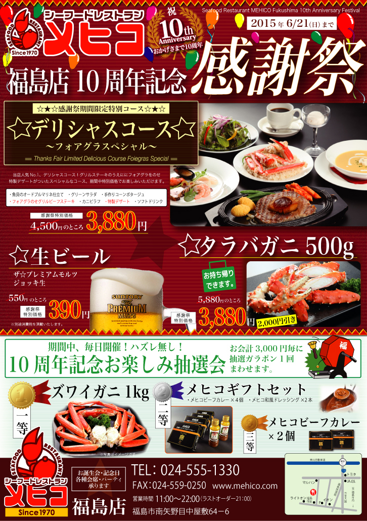 メヒコ福島店では10周年記念感謝祭を開催いたします。